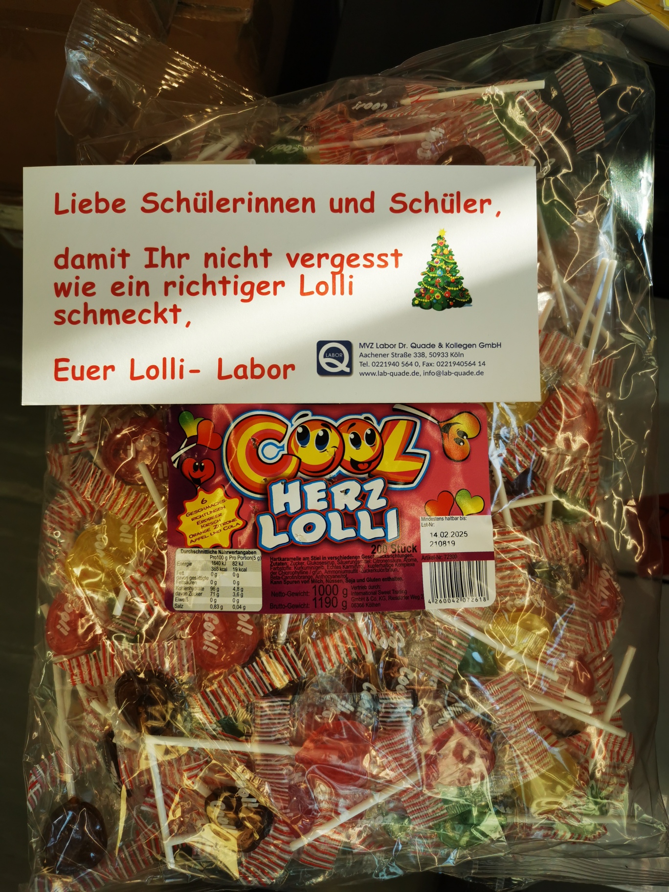 Unser Labor Quade hat übrigens gestern einen Weihnachtsgruß an die Kinder geschickt:
