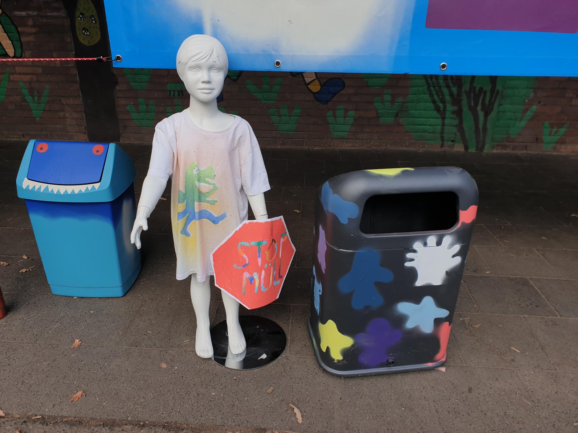 Den Aktionstag "sauberes Kerpen" haben wir genutzt, um neue Hinweisschilder, Banner und neu gestaltete Mülleimer, die die Kinder in Zusammenarbeit mit einer Künstlerin erstellt haben, zu präsentieren. Hintergrund für diese Aktion ist das Ergebnis des Engagements unseres Kinderparlamentes.